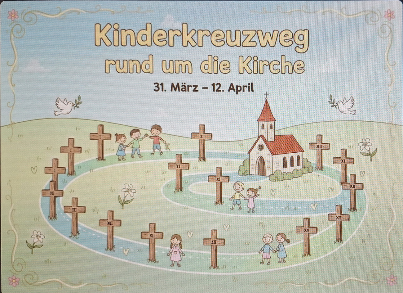 Vom 31.03. bis 12.04.2026 wird es wieder einen Kinderkreuzweg mit verschiedenen Stationen rund um die Kirche geben. Schaut doch einfach mal vorbei