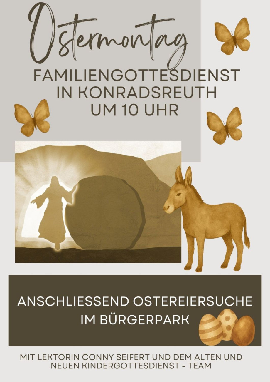 Am Ostermontag sind Familien mit Kindern herzlich zum Familiengottesdienst in die Pfarrkirche eingeladen. Nach dem Gottesdienst dürfen die Kinder Ostereier im Bürgerpark suchen.